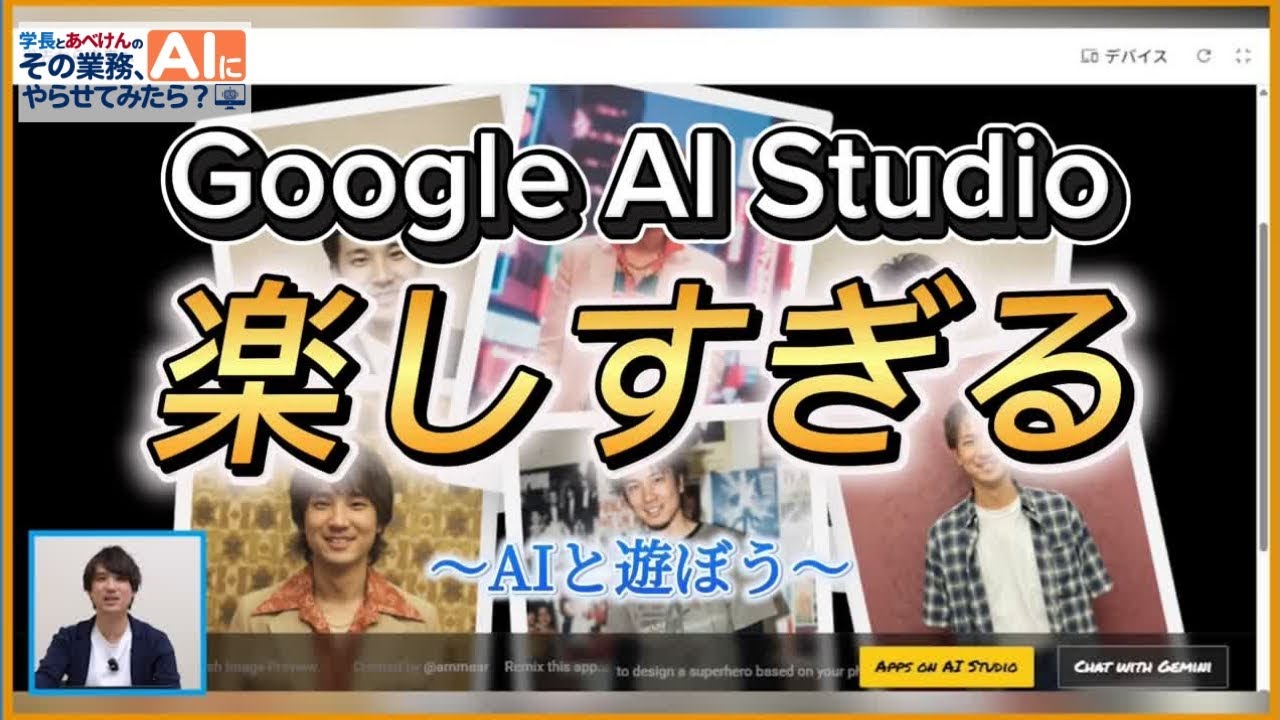 【GoogleのAIがスゴい】Google AI Studioで遊んでみたら世界が広がった!|学長とあべけんの「その業務、AIにやらせてみたら?」#10 AIをフル活用して業務効率化 X Facebook はてブ LINE コピー 2025.11.05