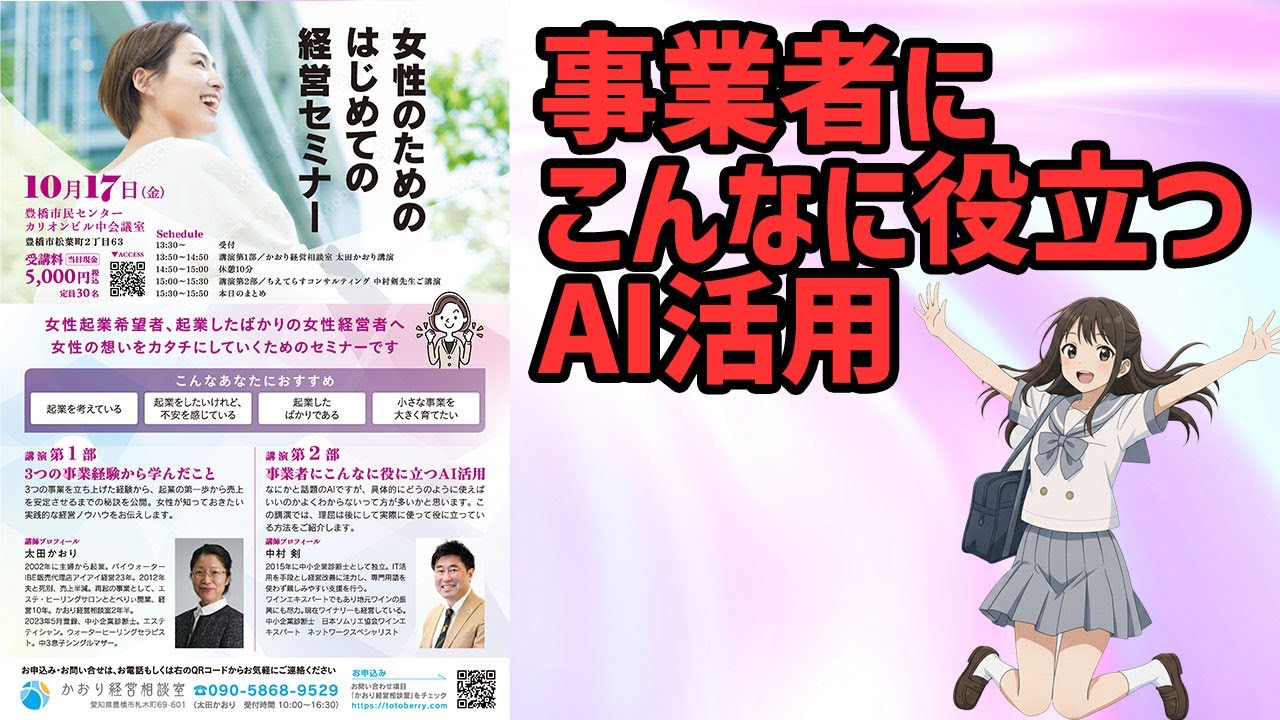 AIをフル活用して業務効率化 【生成AI】「女性のためのはじめての経営セミナー」 事業者にこんなに役立つAI活用 #ai